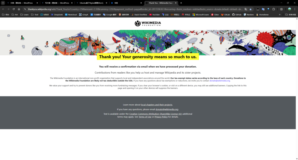 Posted in日常 为 Wiki 捐赠 Posted by By dpecain 2025年3月10日 dpecain View All Posts Post navigation Previous Post 我收藏的那些宝贝书籍Next PostUbuntu 修改主机名