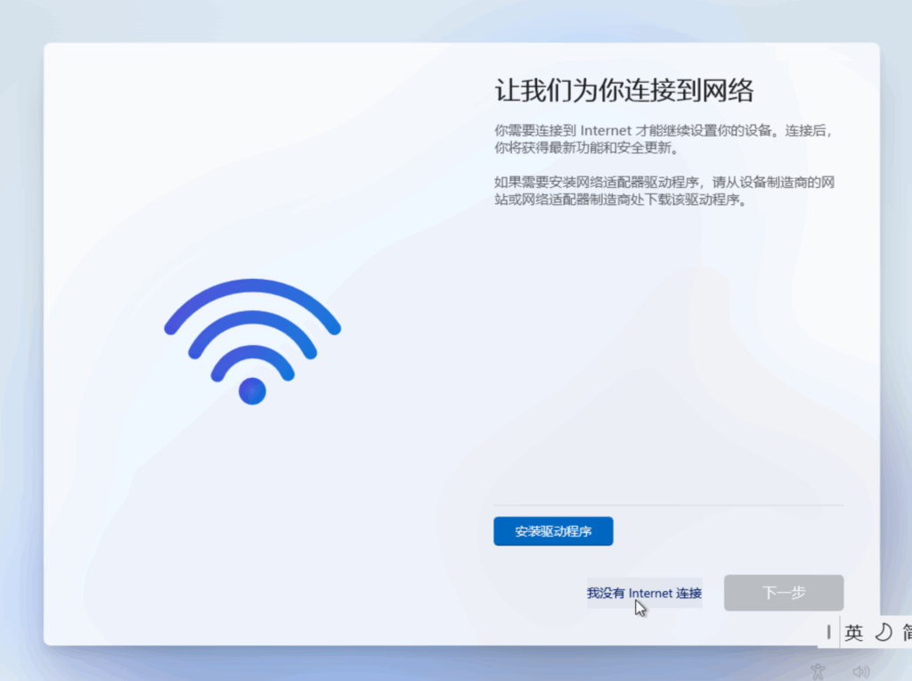 等待重启,页面上就出现 我没有 Internet 连接 选项了